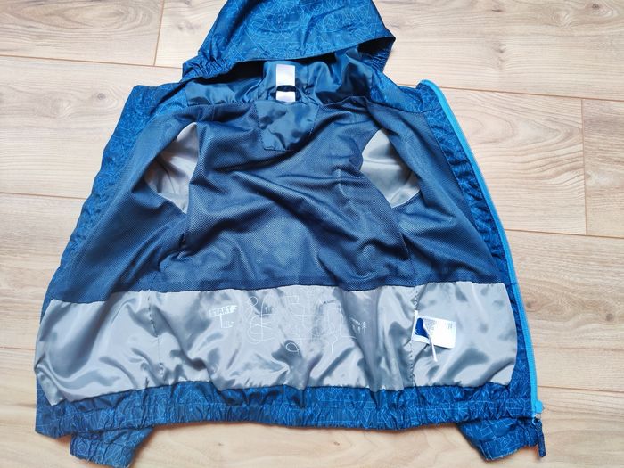 K-way en très bon état. Légèrement abîmé sur le bout des manches (voir dernière photo) et léger accroc sur la manche avant (voir avant dernière photo) mais cela ne se voit pas porté. Pratique à enfiler, résistant à l'eau. Taille 4-5 ans mais convient plus à une taille 5 car il taille assez grand. Dispose de poches sur le devant.