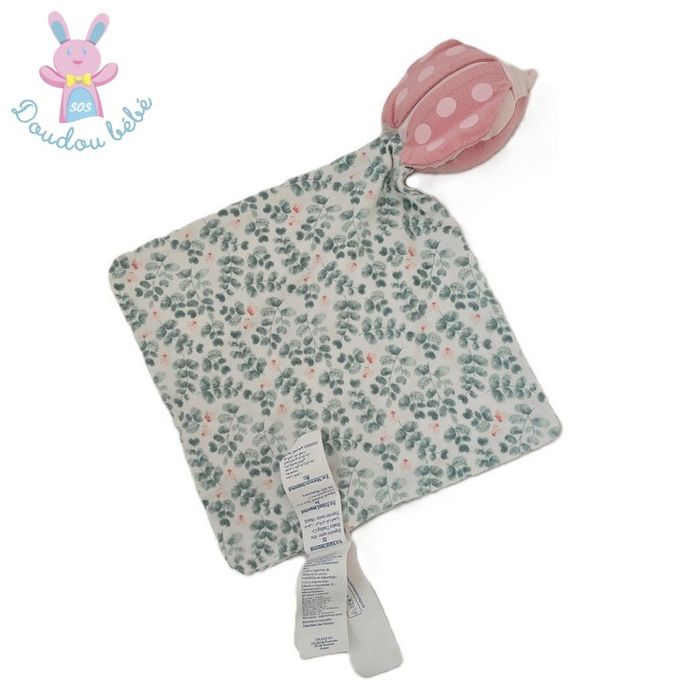 BOUTIQUE PRO SOS DOUDOU BEBE (+ de 3000 doudous en stock) ---------------------------------- Doudou COCCINELLE marque OBAIBI En tissu rose à pois et mouchoir tissu blanc imprimé feuilles verte et rose (réf OB-122) Occasion très bon état #sosdoudouobaibi