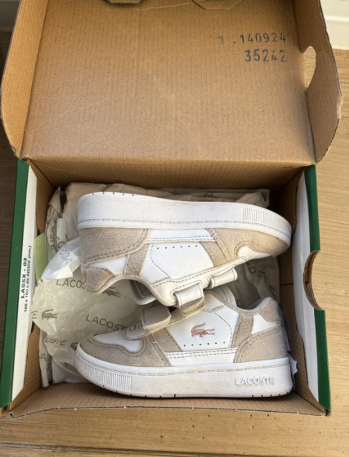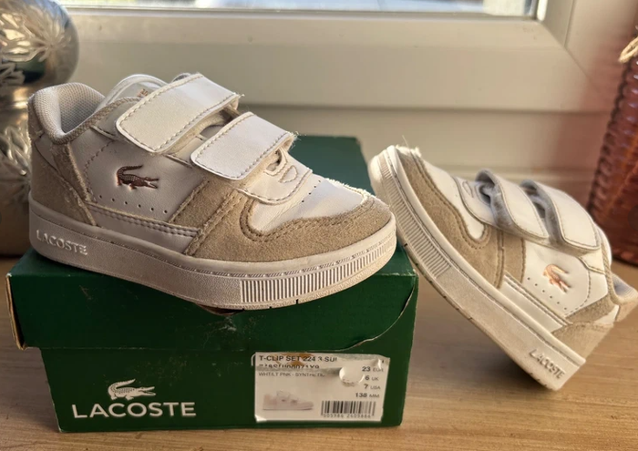Basket Lacoste T-clip Taille 23 Parfait état 📦 Envoi le jour même si possible, ou au plus tard le lendemain 🎁 Remise possible sur les lots Alors n’hésitez pas 😊