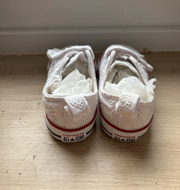 Converse Broderie cœur Taille 23 Parfait état Comme neuve 📦 Envoi le jour même si possible, ou au plus tard le lendemain 🎁 Remise possible sur les lots Alors n’hésitez pas 😊 #broderie #dentelle #fleurs #converse