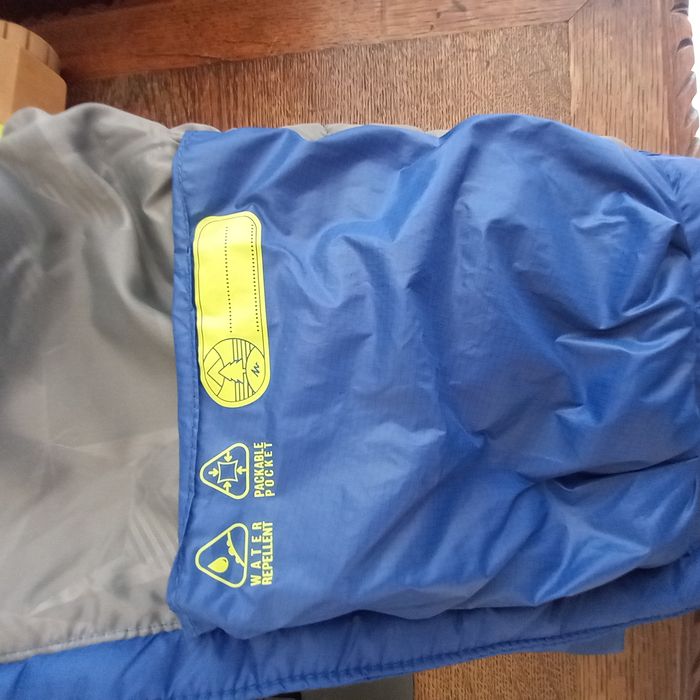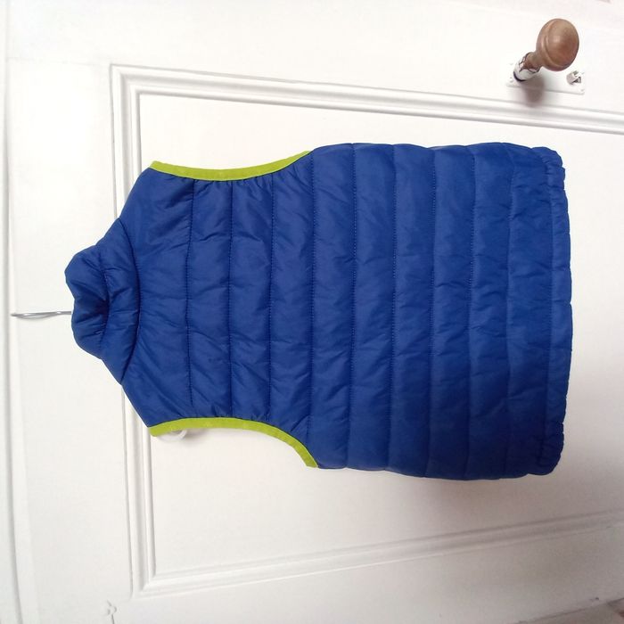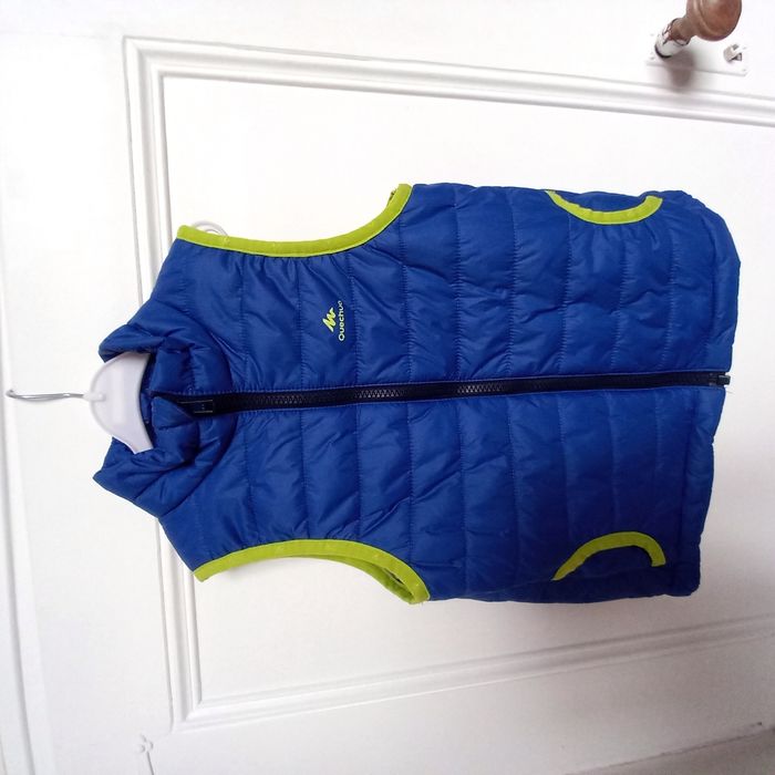 - 1 gilet tout fin à capuche gris Kim et Lou, très bon état - 1 doudoune sans manches Quechua bleue et jaune, état neuf. Peut se ranger dans une petite poche à l'intérieur (voir photo) - 1 veste Creeks marine et grise, très bon état - 1 veste Best Way, bon état, peinture manquante sur la fermeture éclair et un petit défaut sur une manche (voir photos) - 1 gilet noir Orchestra, bon état.