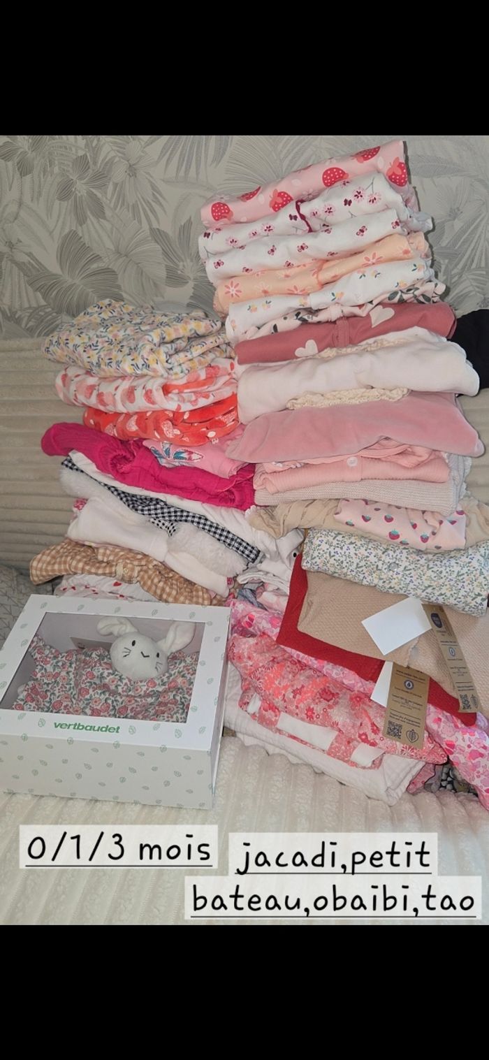 Bonjour je vends le 0/1/3mois de ma fille les vetements sont neuf ou comme neuf porté 1 fois ou 2 😊 si vous etes interessé envoyé moi un mp pour les photos et les prix