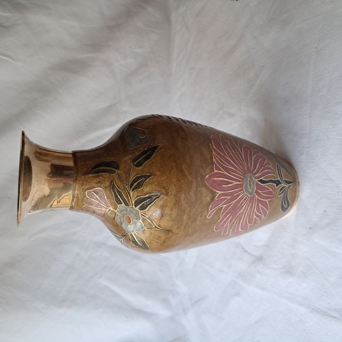 Vase Inde motifs fleurs en laiton Hauteur 23 cm vintage - photo numéro 1