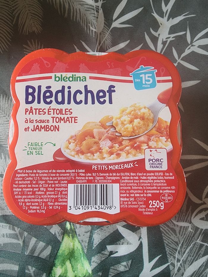 Je vend un repas complet bebe à partir 15 mois pâtes étoile à la sauce tomate et jambon