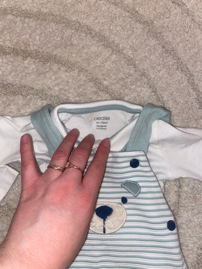 Ensemble obaïbi, taille 1 mois, Très peut porter, Prix d’achat 30 euros.