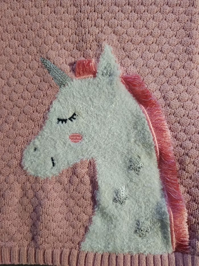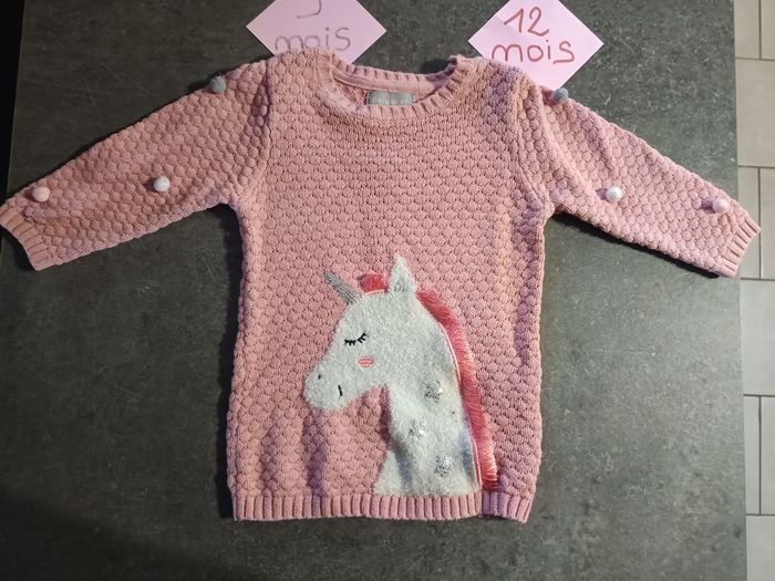 Jolie robe pull rose motif licorne 🦄 avec pompons, EXCELLENT état, comme NEUVE ! Taille 9/12 mois ⚠️ (80cm)