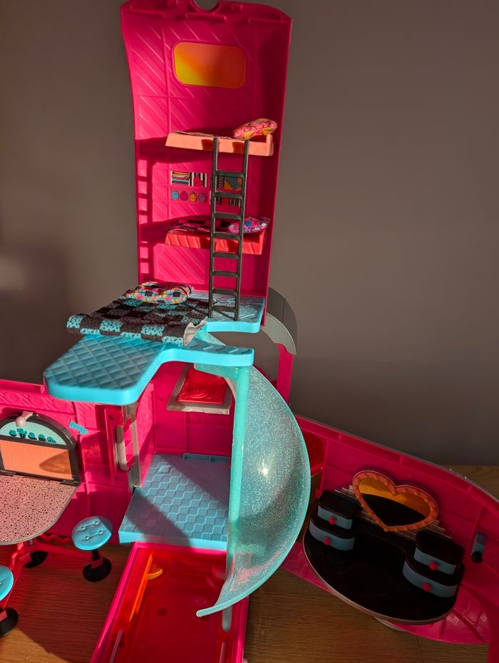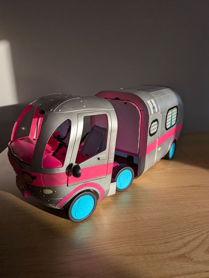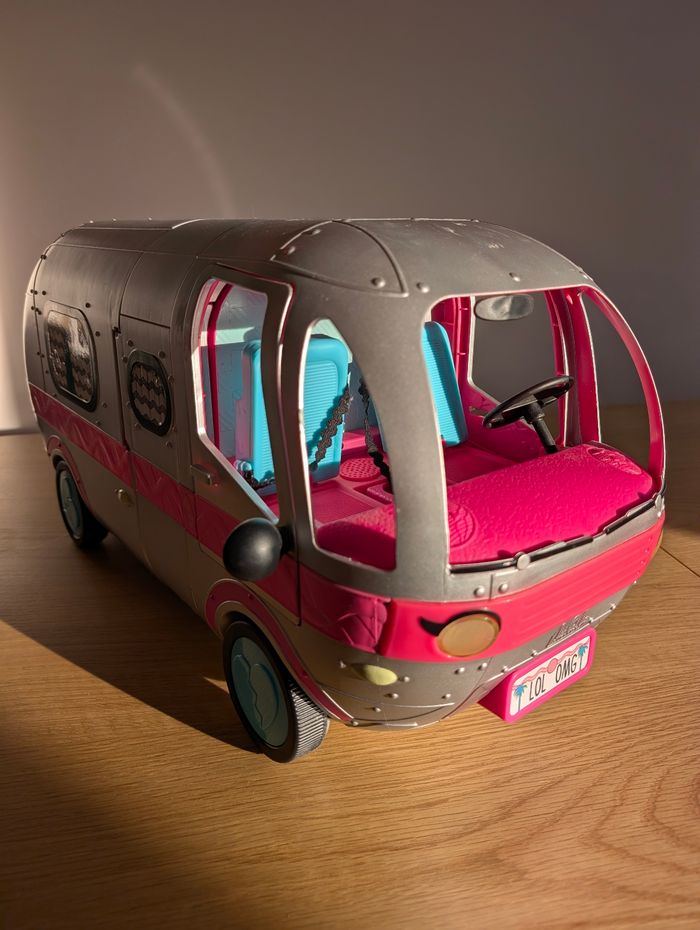 Camping car Poupées LOL Couleur gris et rose Vendu avec les accessoires visibles sur les photos