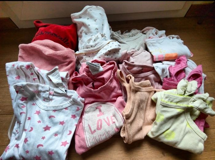Vend lot de pyjamas et body manches longues et courtes taille 24 mois de différentes marques.