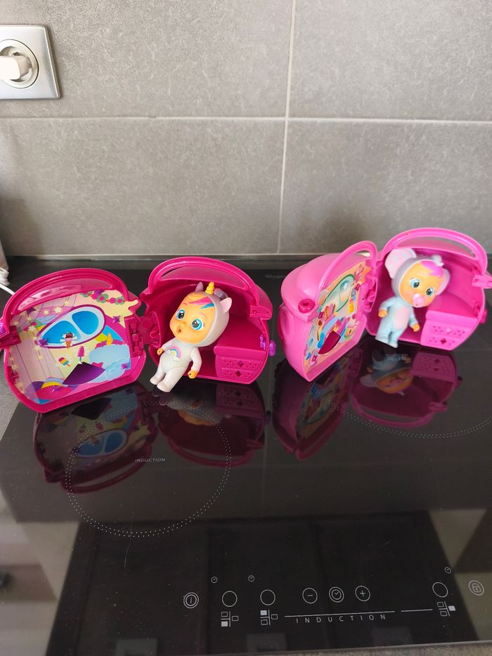 Bonjour je vends 2 mini maisonnettes avec leur poupée et des accessoires.