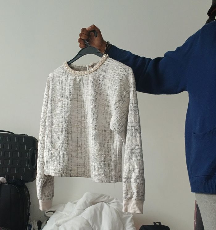 Lot Zara-Ensemble chic - Top tweed perlé & Pantalon fluide crème - photo numéro 3
