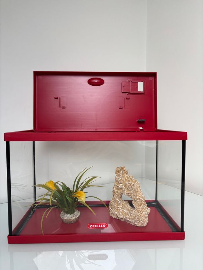 Je vends cet aquarium Zolux tout équipé pour vos poissons. - Type de produit : Aquarium - Adapté pour : Poissons - Dimensions : 34,5 cm x 17 cm et 23,5 cm de hauteur - Marque : Zolux - Accessoires inclus : Décoration végétale, rocher décoratif N'hésitez pas à me contacter pour plus d'informations !