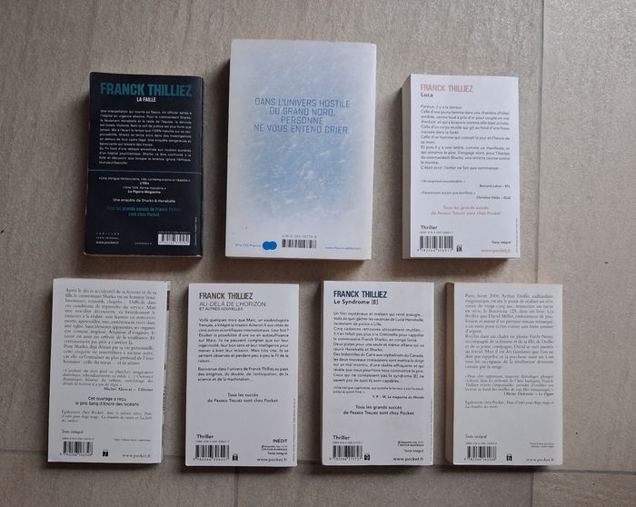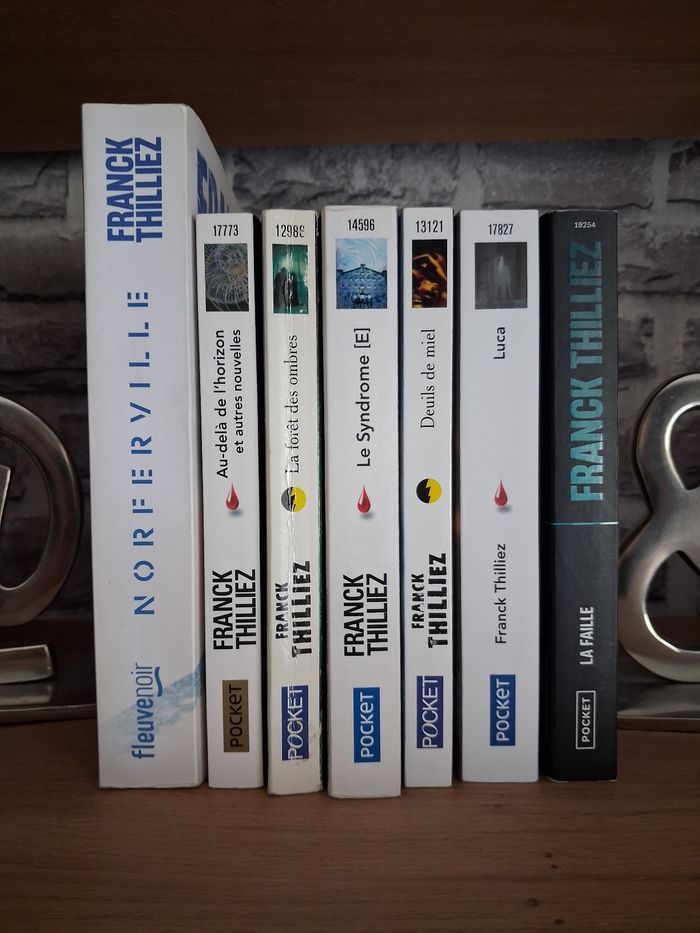 ✏️ Norferville Edition Fleuve Noir Très bon état Prix éditeur : 22,90 € 6 au format poche ✏️ Le syndrome E Très bon état Edition Pocket Prix éditeur : 9.90€ ✏️ Luca Très bon état Edition Pocket Prix éditeur : 9.90€ ✏️ La faille Bon état - Couverture marquée sur un coin Edition Pocket Prix éditeur : 9.60€ ✏️ Deuils de miel Bon état Traces d’une ancienne étiquette sur le devant Edition Pocket Prix éditeur : 8,70€ ✏️ La forêt des ombres Bon état Edition Pocket Prix éditeur : 8,70 € ✏️ Au delà de l’horizon et autres nouvelles Très bon état Edition Pocket Prix éditeur : 9 €