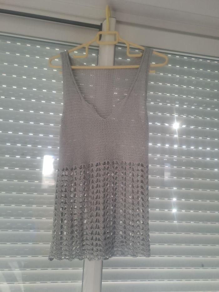 Haut / Débardeur long en maille ajouré gris argenté - photo numéro 2