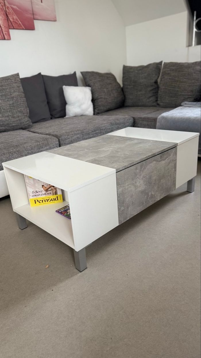 Table de salon en très bon état. Matière : bois marbré Aucun défaut Raison de la vente : déménagement À venir chercher à Dunkerque