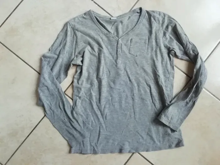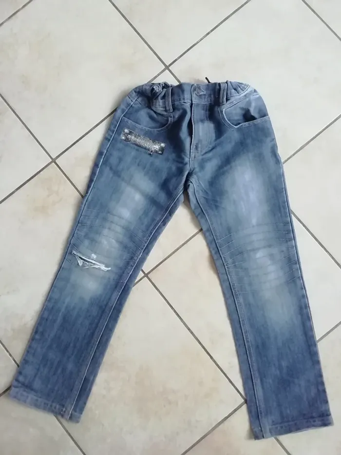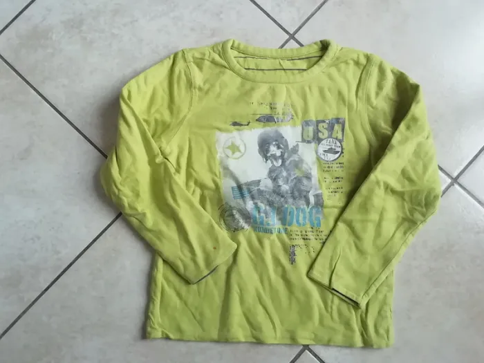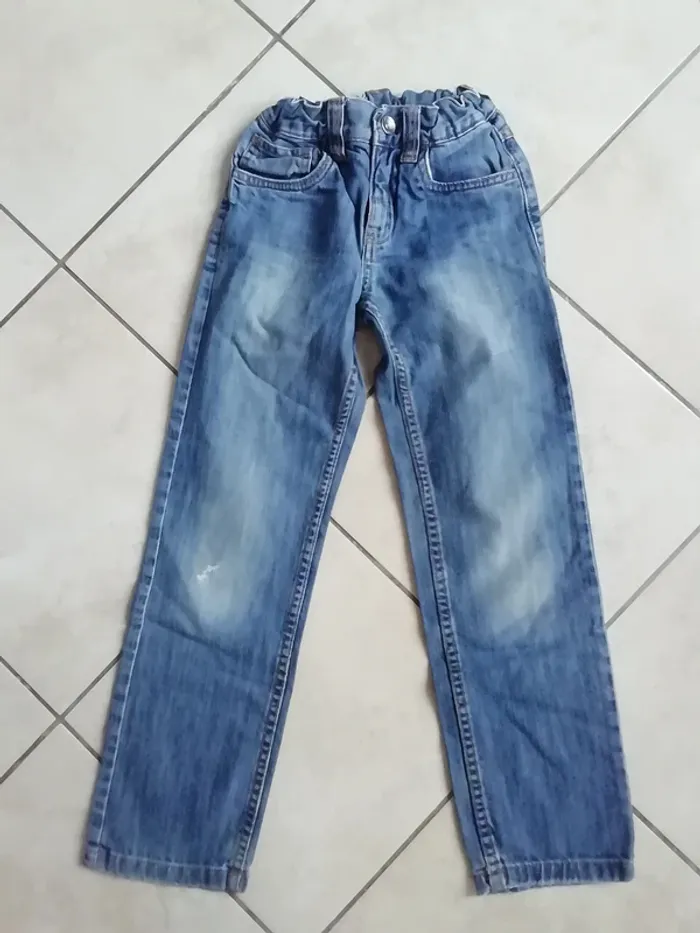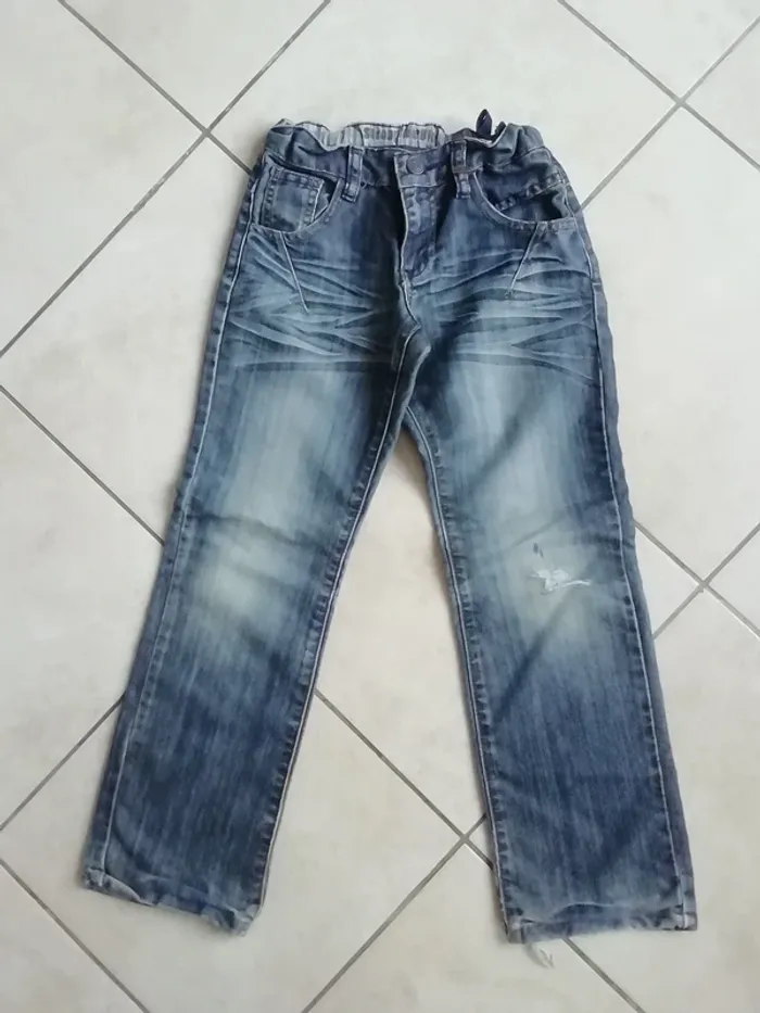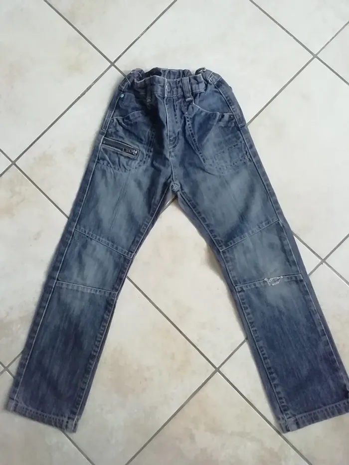 VETEMENTS BIEN PORTES AVEC DEFAUTS OU USURES,D OU LE PRIX !! -1 HAUT MANCHES LONGUES GRIS/VERT. ETAT CORRECT(petite tache au poignet). -1 HAUT MANCHES LONGUES RAYE -1 HAUT MANCHES LONGUE GRIS. ETAT CORRECT(petite trace devant). -1 HAUT MANCHES LONGUES GRIS. BE(petite trace devant). -1 JEAN TOUT COMTE FAIT BLEU. BE MAIS A ARRACHE AU GENOU(donc à réparer ou à couper en bermuda). -1 JEAN C&A BLEU. BE MAIS PETITE USURE NIVEAU GENOU. -1 jean bleu fonce. ETAT CORRECT MAIS TRACE DE FEUTRE AU GENOU ET USURE (donc à réparer ou à couper en bermuda). -1 JEAN KIABI/NKY BLEU D+FONCE. BE MASI PETITE USURE AU GENOU. -1 PANTALON DE DETENTE / BAS DE PYJAMA BLEU. BE. -1 MAILLOT DE CORPS BLEU. ETAT CORRECT. -1 MAILLOT DE CORPS BLEU FONCE. ETAT CORRECT. J AJOUTE EN KDO 1 HAUT DE PYJAMA BATMAN ET UEN ROBE DE CHAMBRE BIEN PORTES (plus possible d ajouter de photo)...