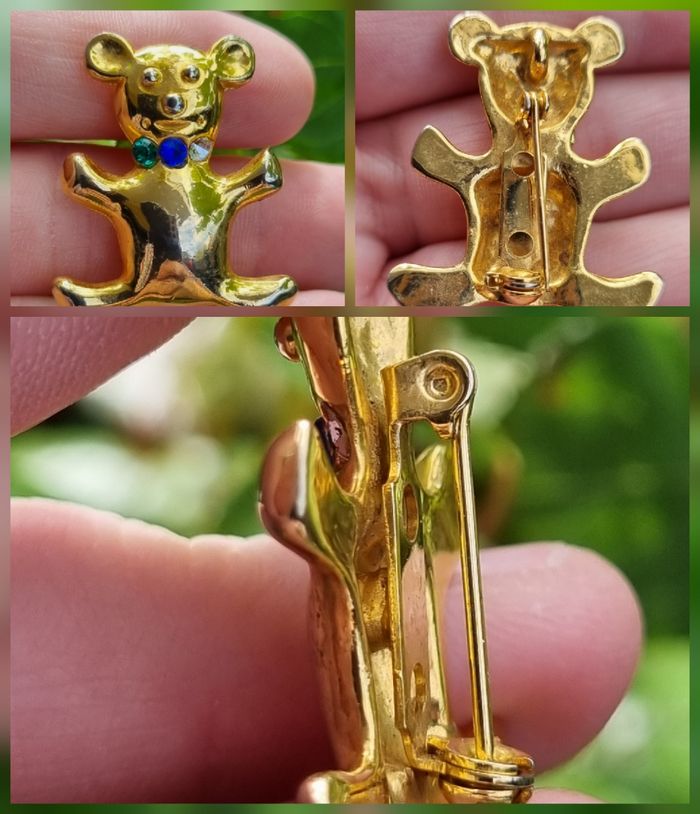 💛 Broche nounours doré – 4 € Je vends cette adorable broche vintage 1980 en forme de petit nounours 🧸✨ Elle est en très bon état, malgré un petit détail : une des trois perles manque (l’emplacement est creusé). Les deux autres perles, verte et bleue, sont bien présentes 💎💚💙 ⭐ Caractéristiques : - 🧸 Thème : Petit nounours - ✨ Couleur : Doré - 💎 Décor : 2 perles restantes (bleue + verte) - 📌 Peut se porter en broche - 📿 Peut aussi se porter en pendentif grâce au petit anneau prévu - 🌟 État général : Très bon état - 💰 Prix : 4 € 🧸 Matière probable : - Métal fantaisie - Finition dorée - Strass/perles décoratives (dont une manquante dans ton cas) C’est exactement le style des broches vintage des années 80‑90, très souvent fabriquées dans ce type de métal. Parfaite pour ajouter une petite touche mignonne et vintage à une tenue, un sac ou un collier 💖 📩 N’hésitez pas à me contacter si intéressé(e).