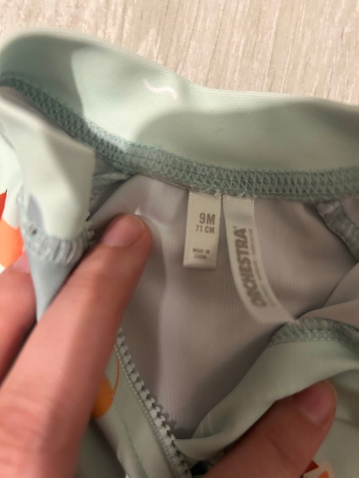 Maillon de bain à manches longues Marque Orchestra Taille 9 mois - 71cm Bouton pression au niveau de l’entrejambe Fermeture éclair au niveau du torse Porté 2 fois seulement