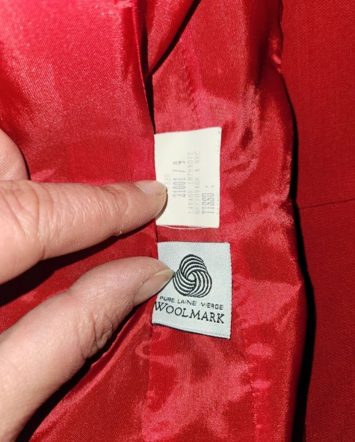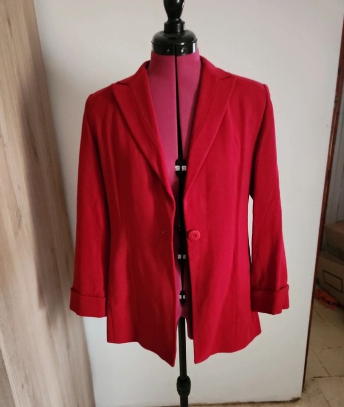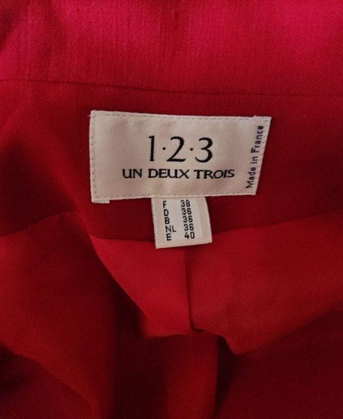 Très jolie veste Femme de la Marque 1.2.3 Sublime couleur rouge, en Pur Laine Vierge et fabriquée en France ! Taille 38. État irréprochable ! Belle affaire à saisir 🥰