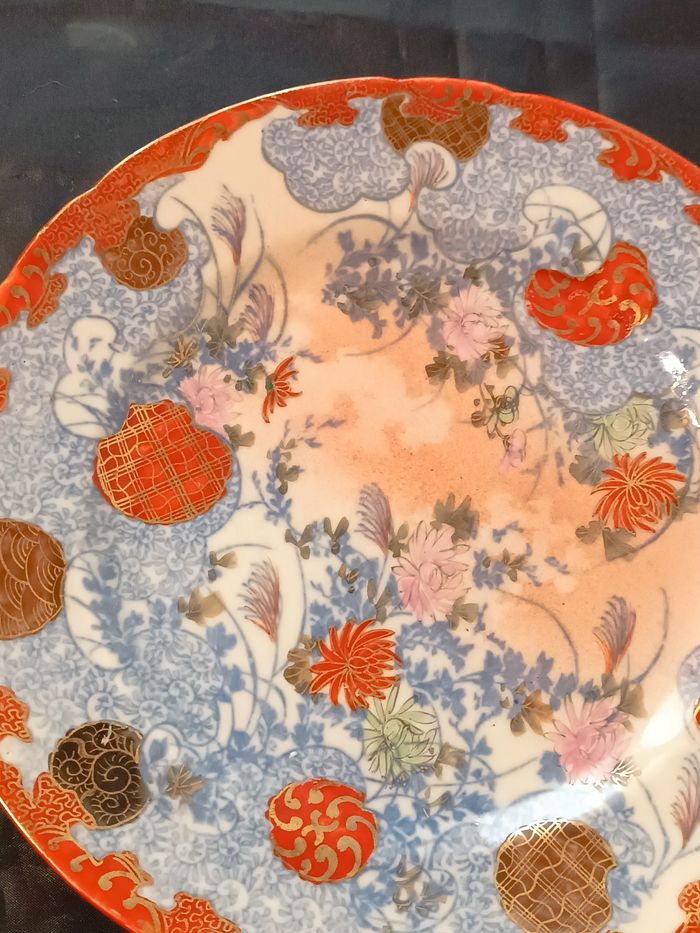 Assiette asiatique en porcelaine à décor floral 21,5 cm de diamètre bon état cf photos