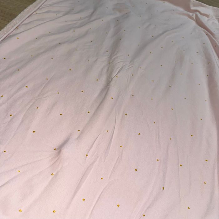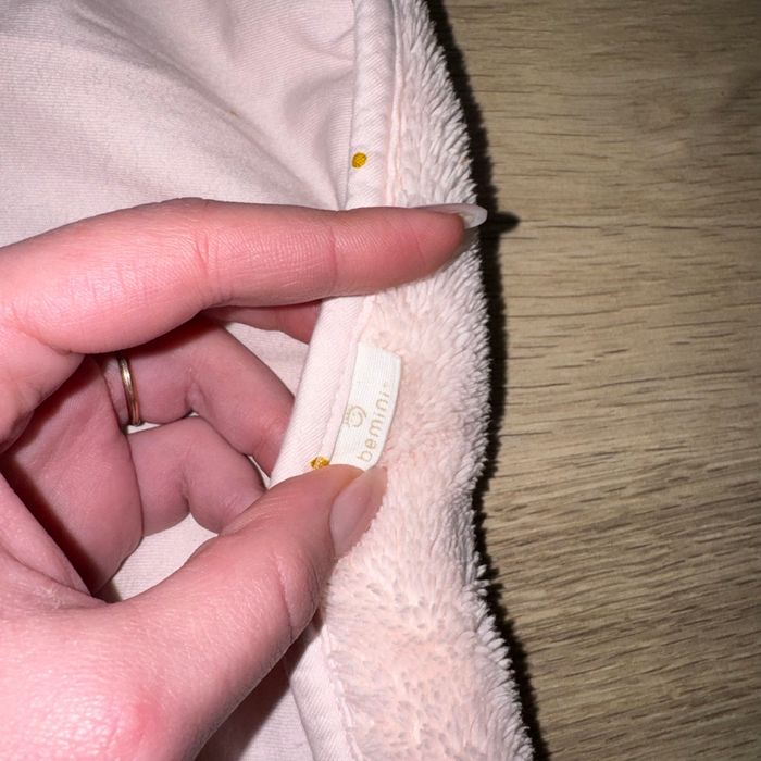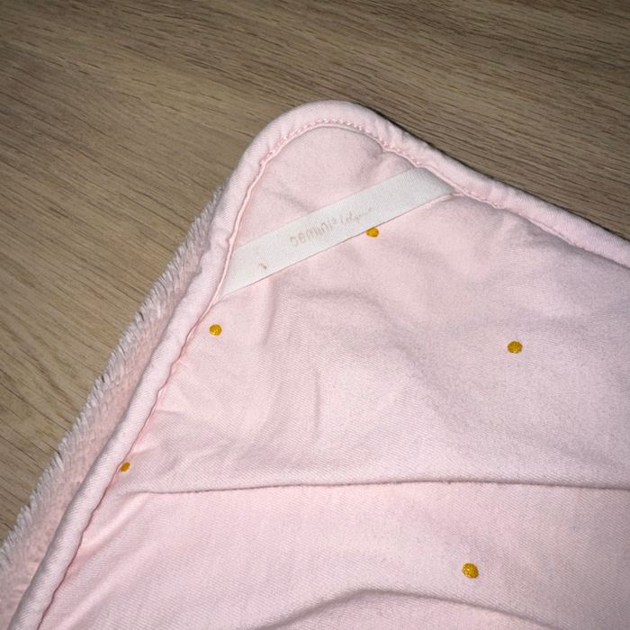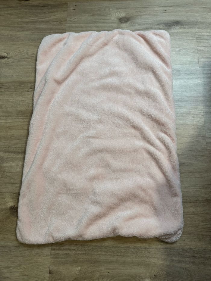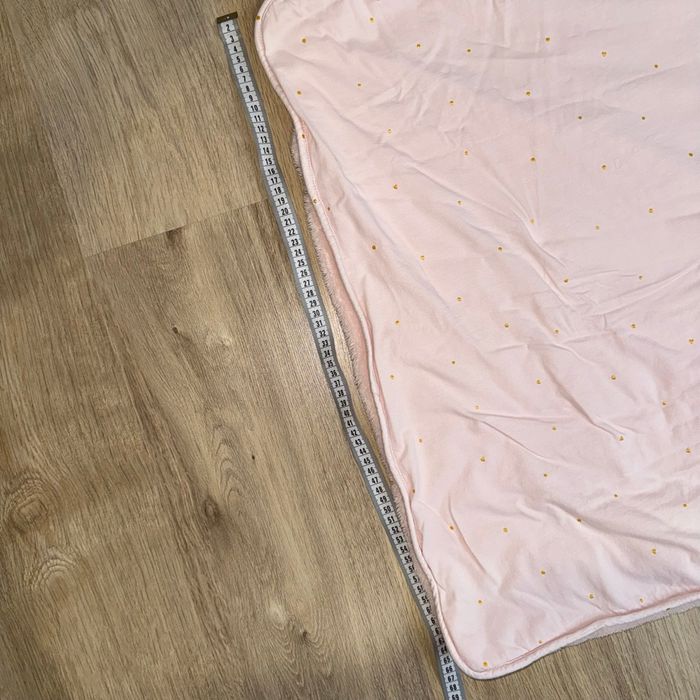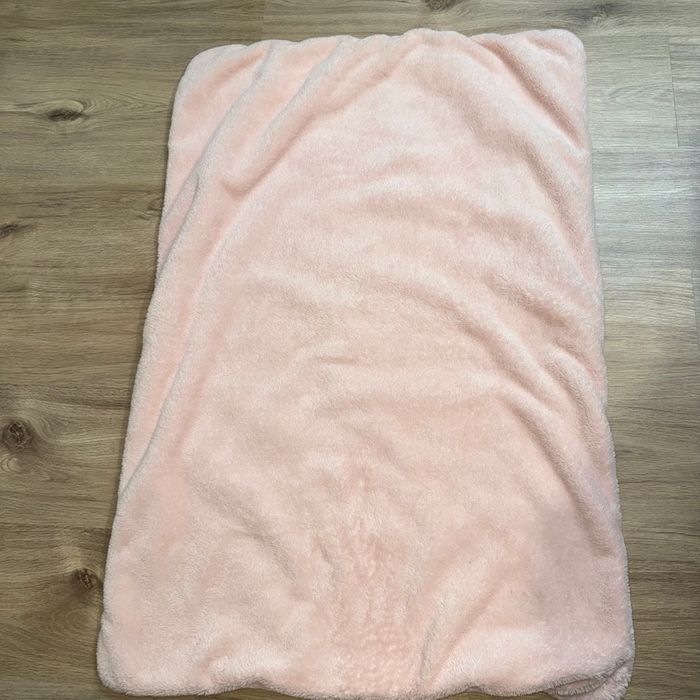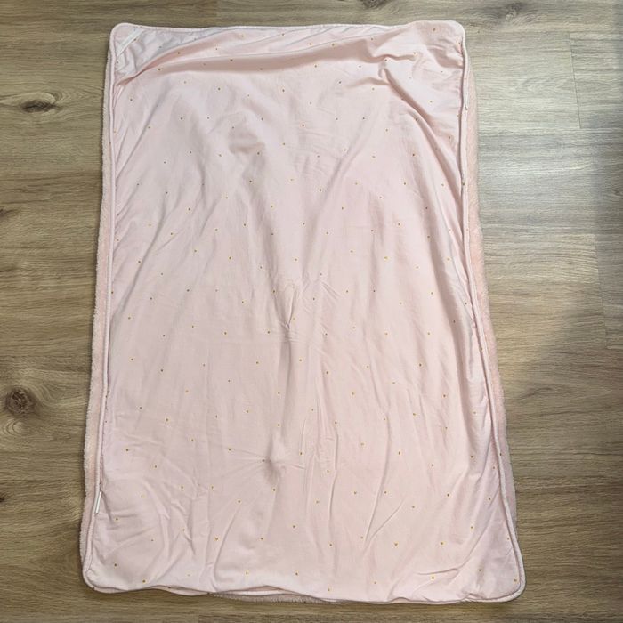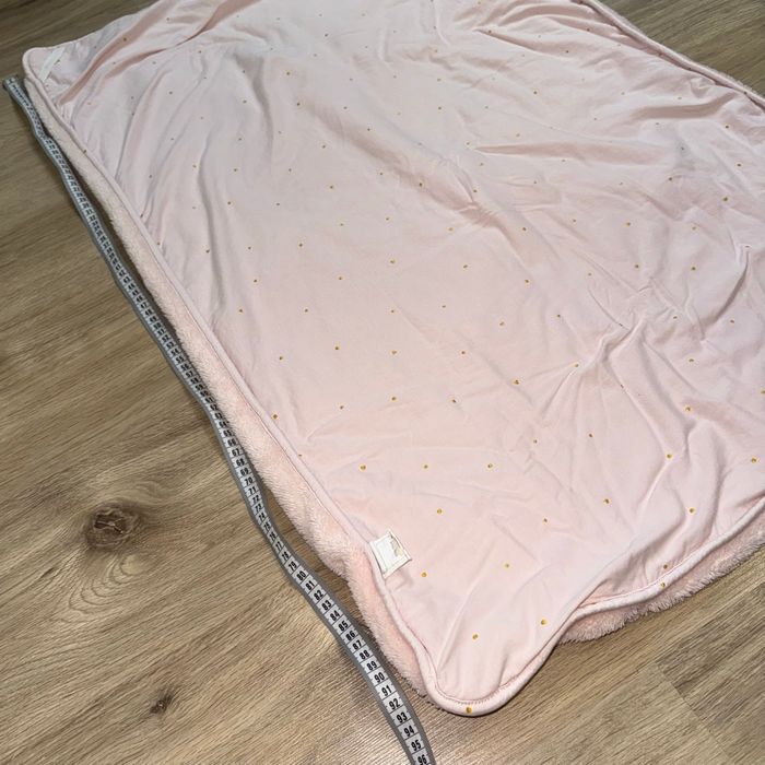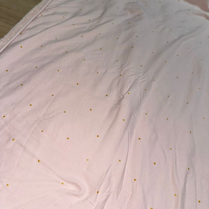 Couverture polaire bébé Bemini +-95cmx67cm (non tendu correctement ) Rose polaire Rose à pois et petits cœurs dorés Très bon état