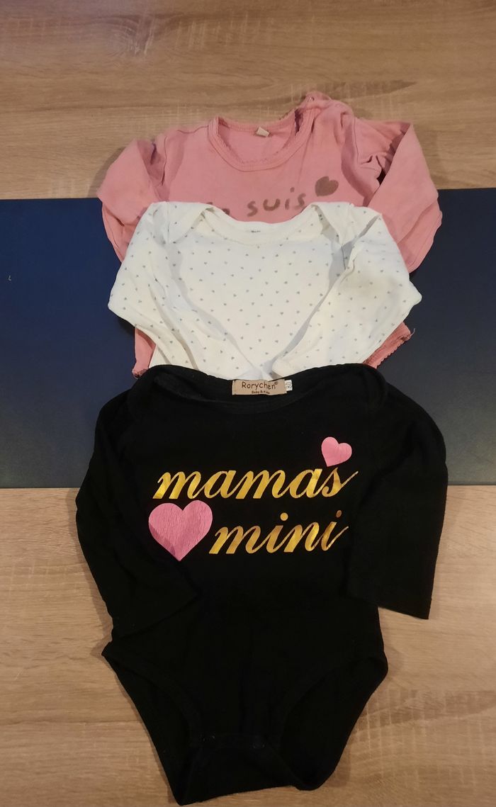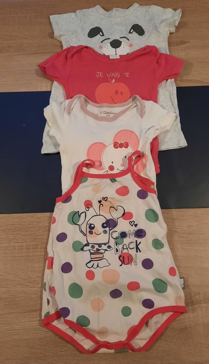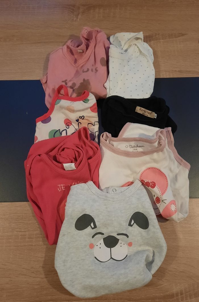 Le lot comprend, 3 body à manches longues 3 body à manches courtes 1 body à bretelle Plusieurs marques, mot d'enfant, kitchoun... Taille 18 mois De bon état à très bon état Il manque un bouton au body noir ( voir photo)