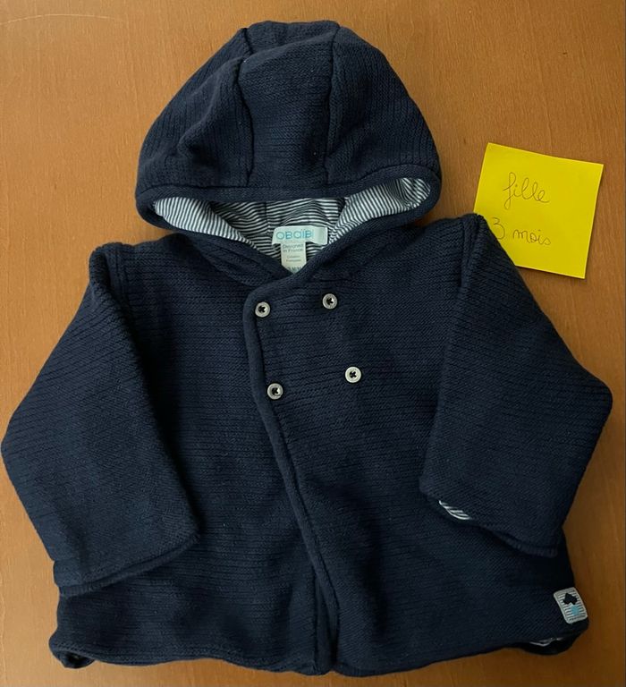 Bonjour, A vendre gilet chaud taille 3 mois de la marques Obaïbi : 5€ Il a été porté, voir les photos. Mis sur d’autres groupes de vente Regardez dans mon dressing j’ai des vêtements garçon du 3 mois à 10 ans Et des vêtements fille de la naissance à 4 ans