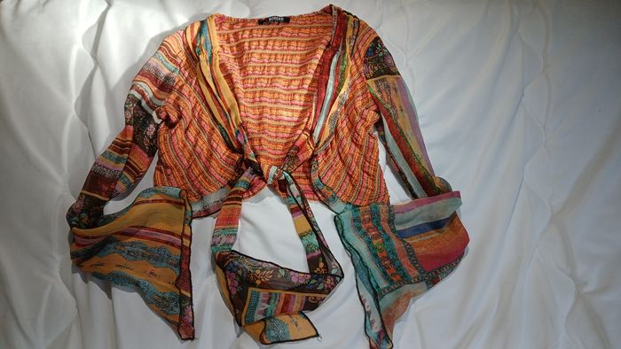 Petite blouse parfaite avec un débardeur et un jean ( baskets ou talon 😉 ) . Habillé et décontracté pour l'été. Aucun défaut. Paraît neuf.