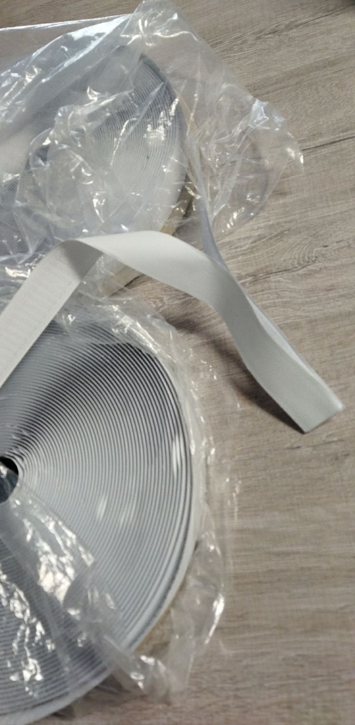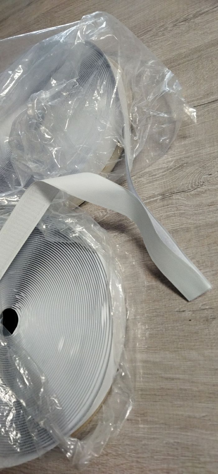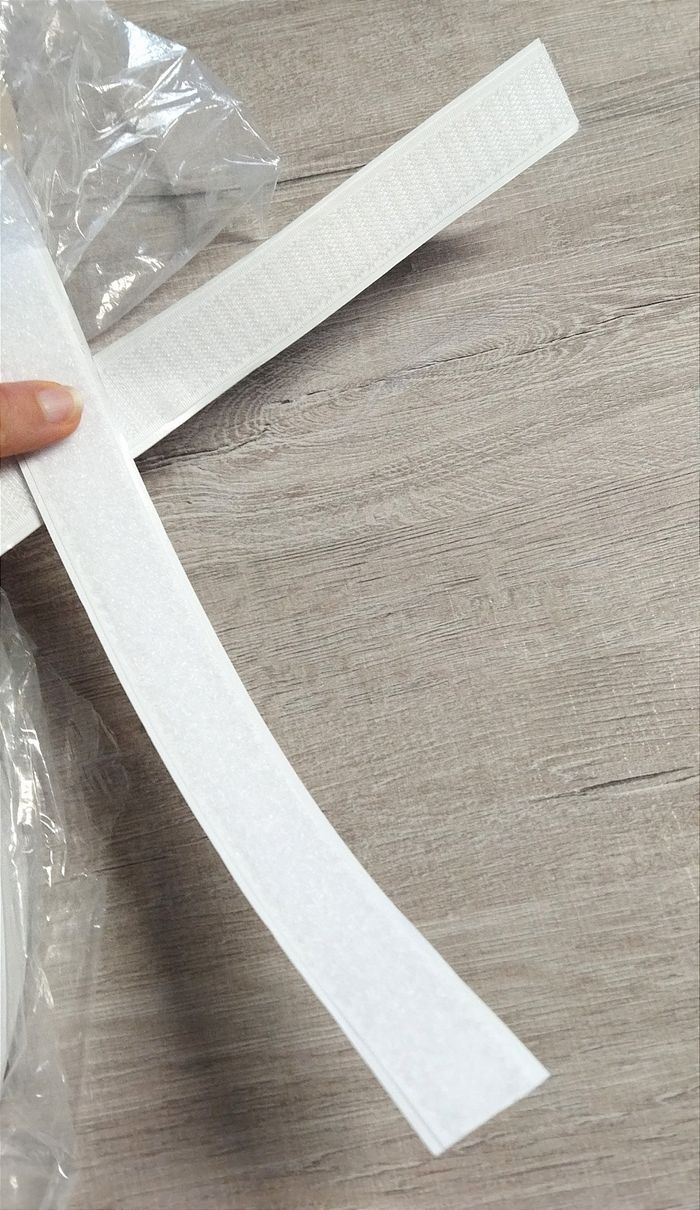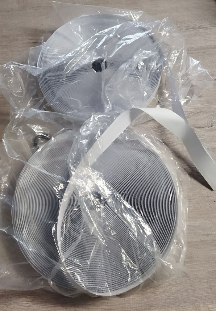 Plusieurs mètres de scratch, je ne sais pas combien. Avec un côté colle un côté scratch