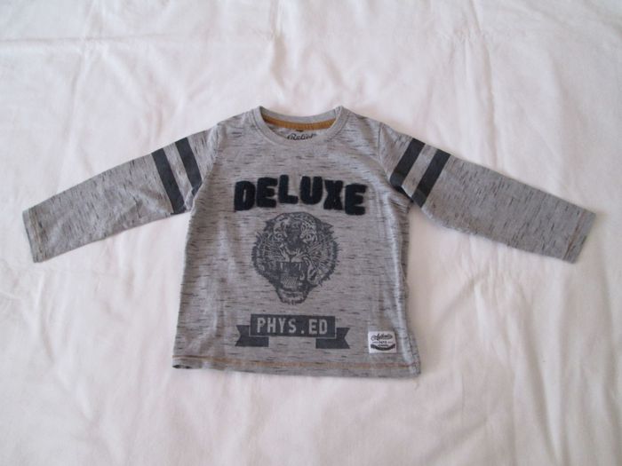 Vends tee-shirt gris tête de tigre. Manches longues. Taille 3 ans. Excellent état. N'hésitez pas à consulter mes autres annonces.