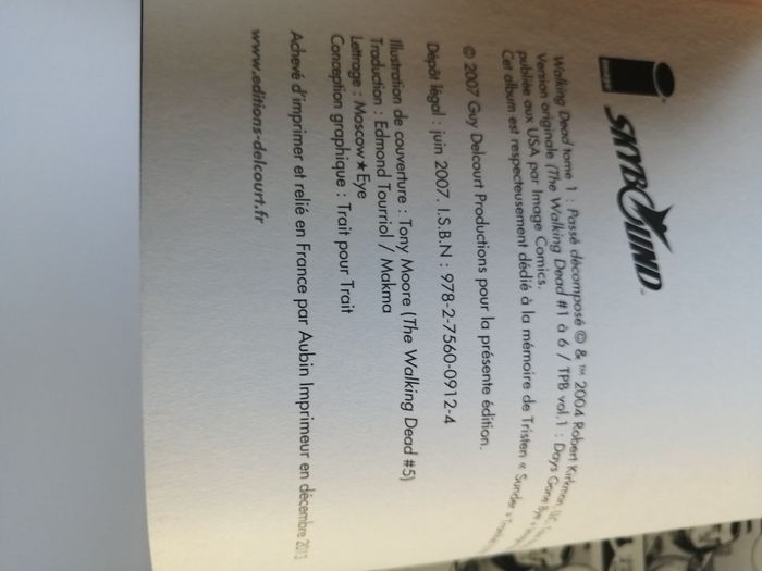 livre BD en noir et blanc walking dead 1 passé décomposé édition delcourt 142 pages 2007 ISBN 9782756009124