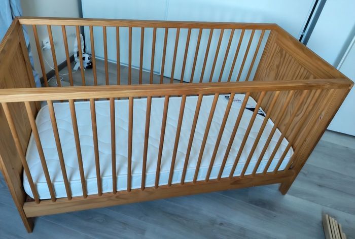⚠️⚠️⚠️⚠️⚠️pas d envoi. A venir chercher sur 33450 st loubes ou 33210 langon⚠️⚠️⚠️merci. Vend lit bebe 70/140. Possibilité de remonter la hauteur du lit Très stable et solide. Avec matelas builtex en très bon état. Il n'y a aucune tâche et il n'y a jamais eu d'accident dessus. Acheté en 2023. Avec support et moustiquaire marques 3kgs 700