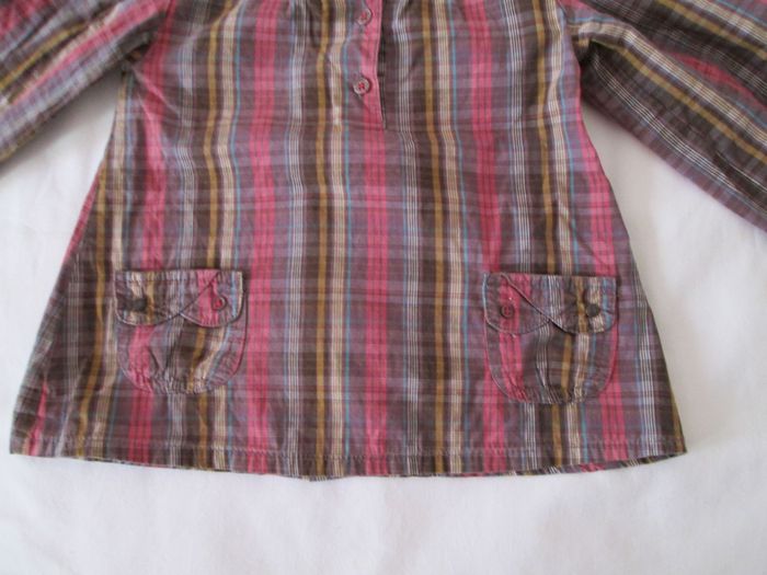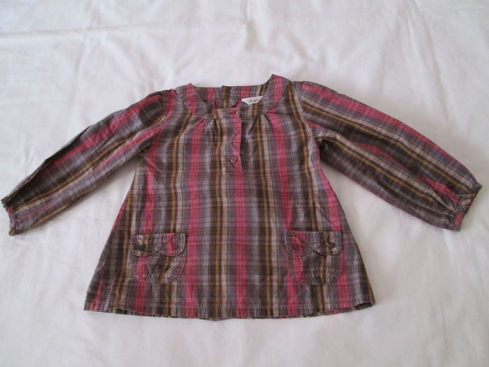 Vends blouse à poches. Manches longues. Boutons décoratifs sur le devant. S'attache avec des boutons dans le dos. 100 % coton. Taille 3 ans. Excellent état. N'hésitez pas à consulter mes autres annonces.