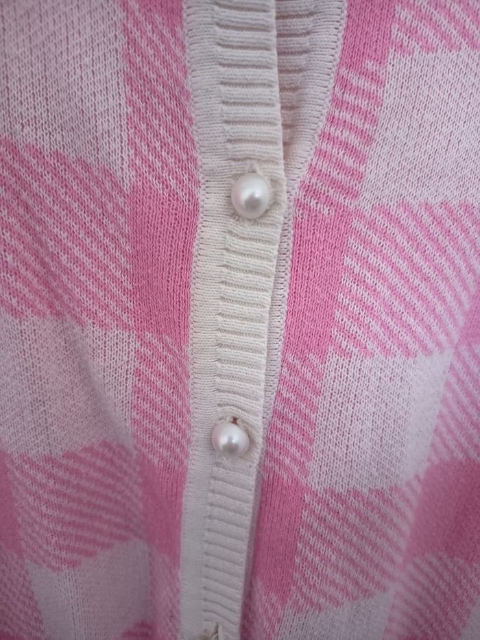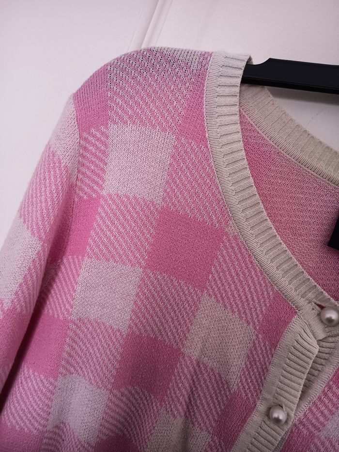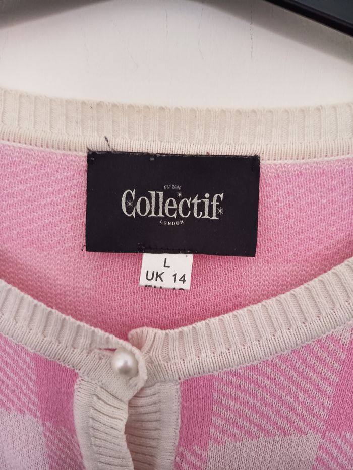 Très beau gilet Collectif manche 3/4 Carreaux rose et blanc avec bouton nacré Porté peu de fois Taille L #collectifclothing #collectif #pinup #retro #rockabilly