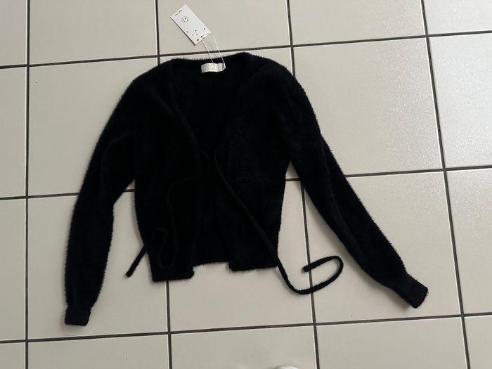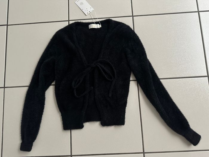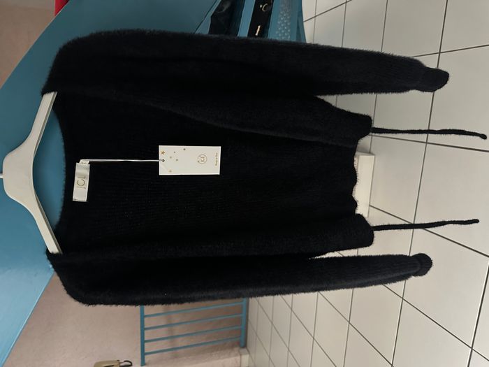 Gilet / boléro noir NEUF taille 36 marque : JCL PARIS avec lien de serrage devant pour faire un petit nœud matière douce et chaude composition 70% polyamide, 19% viscose, 11% polyester et lavage 30 degrés.