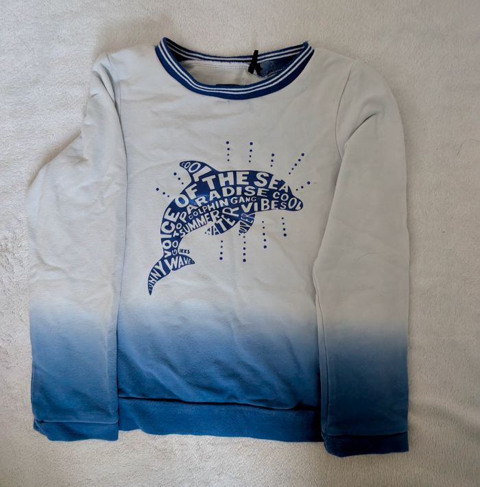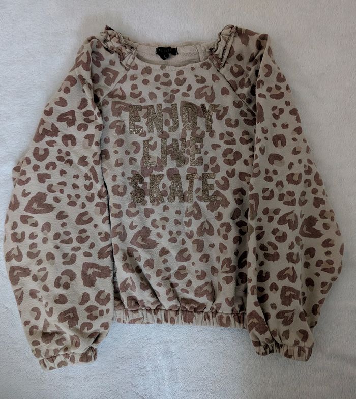 Lot de 2 sweats IKKS : Sweat blanc et bleu – 5 ans → Très porté → Petite tache au coude gauche → Blanc un peu passé, légères usures liées à l’usage Sweat léopard – 6 ans → Taille un peu court → Très porté → Légères usures Vêtements propres, encore portables, idéal pour l’école / le quotidien 📦 Envoi soigné 🚭 Maison non-fumeur