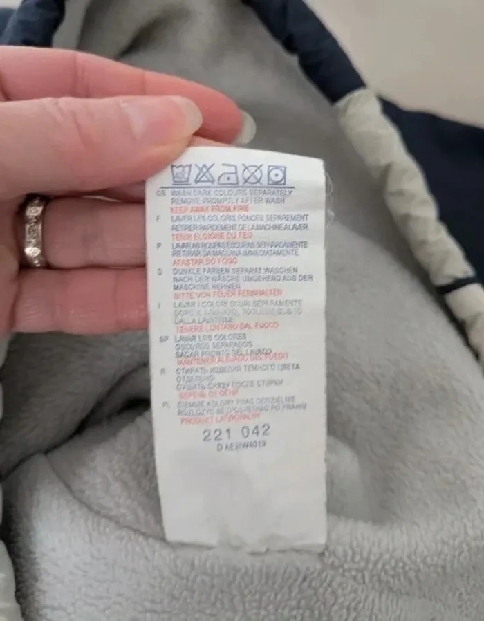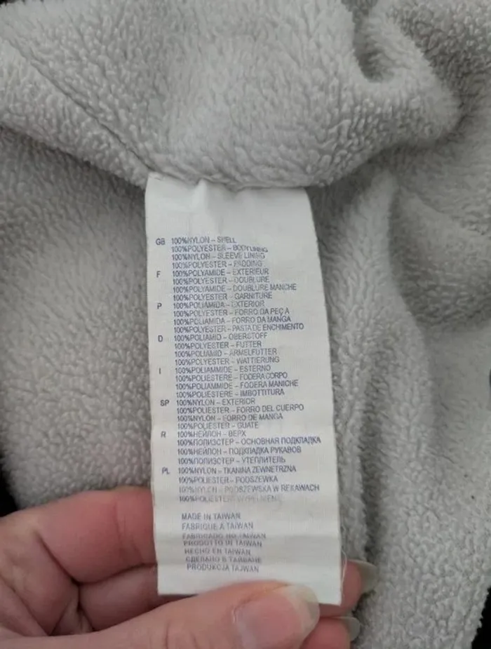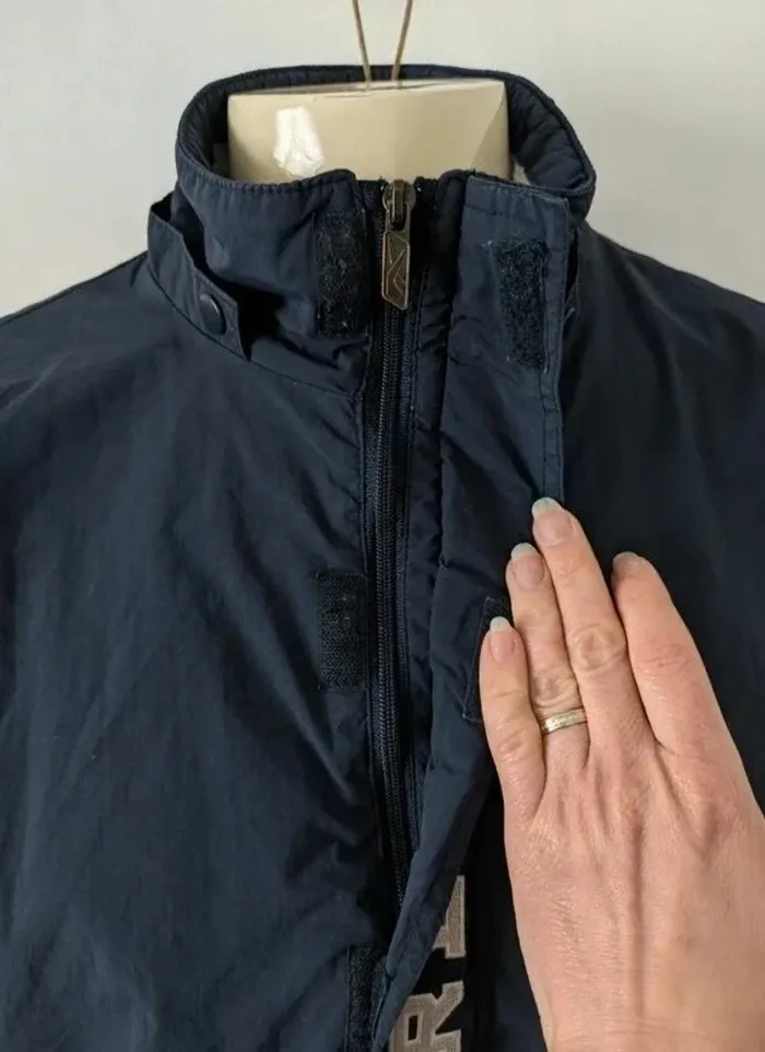 Largeur aisselles 63 cm Longueur 73 cm 2 poches zippées, doublé polaire Usure visible sur les photos, intérieur très bon état