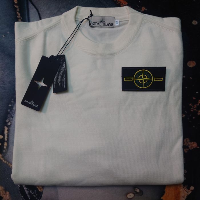 Pull Stone Island à col rond, coupe moderne et confortable, idéal pour un style casual premium. Modèle emblématique avec badge Stone Island amovible sur la manche, finitions soignées et matière agréable à porter.  État : neuf avec étiquettes  Marque : Stone Island Taille : XL  Coupe : droite  Col : col rond  Manches : longues  Détail : badge amovible sur la manche  Couleur : Blanc  Saison : mi-saison / automne / hiver Article soigneusement stocké, livré avec ses étiquettes d’origine. Envoi rapide et protégé.   N’hésitez pas à me contacter pour toute question ou pour la disponibilité des tailles et couleurs.