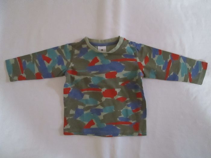 Vends tee-shirt imprimé à manches longues. Boutons pressions sur l'épaule. 100 % coton. Taille 6 mois. Neuf, jamais porté. Pour plus de choix, allez consulter mes autres annonces.