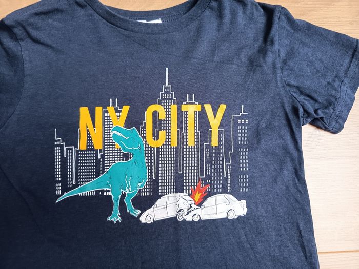 T-shirt manches courtes bleu marine, thème New York, city, dinosaure. Très bon état. 👉 Maison non fumeur sans animaux. 👉 Remise en main propre secteur Lille CHR possible. 🌺Voir mes autres annonces beaucoup de cosmétiques bio, vegan, solide en vente mais aussi livres, jouets, vêtements femme et enfants, chaussures, accessoires, bijoux... RÉDUCTION SUR LOT DES 2 ARTICLES🌺 📦 Envoi rapide des colis
