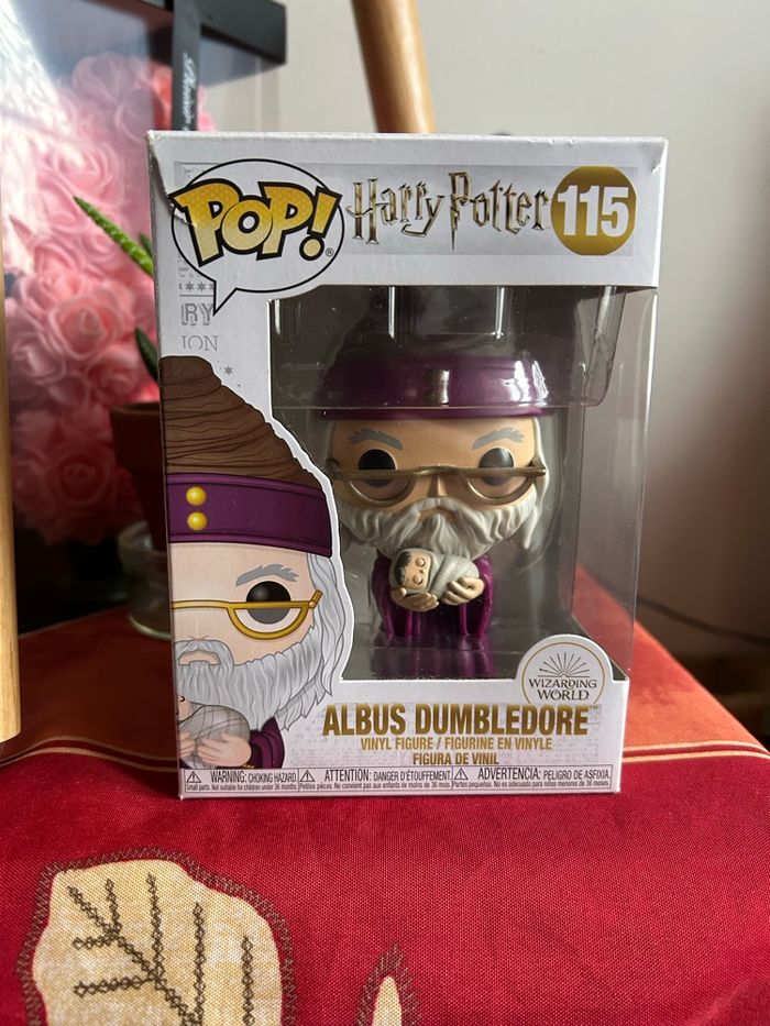 Funko pop Albus Dumbledore tenant un bébé Boîte d’origine en bon état, le devant de la boîte est un peu abîmé Figurine neuve, jamais sortie de la boîte Numéro : 115