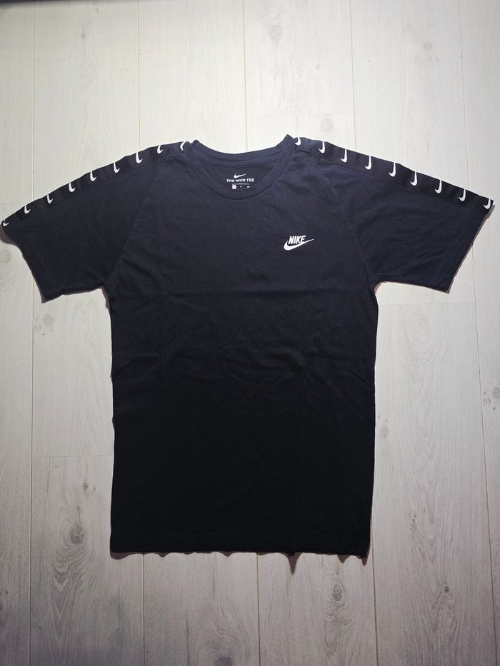 • T-shirt Nike noir manches logo répété épaules 👕 Taille S 🌟 Très bon état (défaut sur les logos des manches - voir photos) 📐 Mesures en photos 🚛 Envoi sous 48h