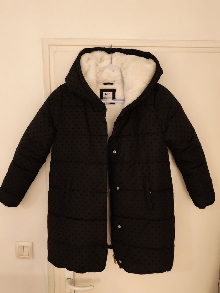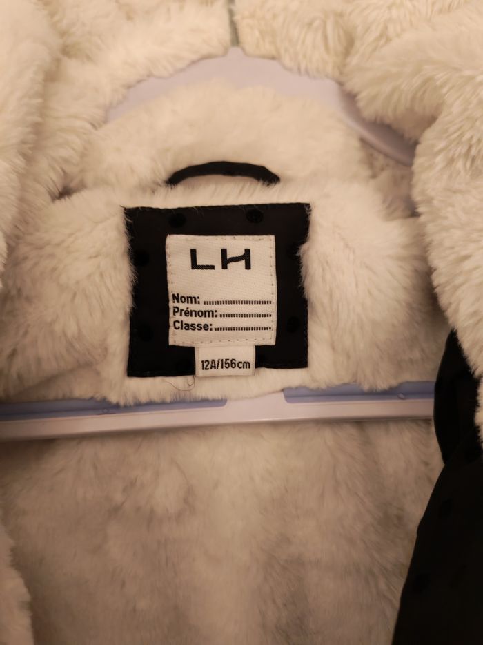 Manteau mi-long doublé polaire 12 ans, taille correctement 2 poches, fermeture éclair et boutons pression Capuche non amovible