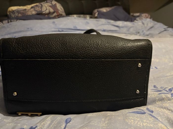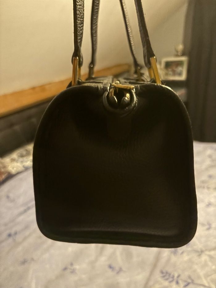 Sac Astrid de la maison Delvaux en cuir noir. Il manque 2 petits clous dorés. État impeccable.