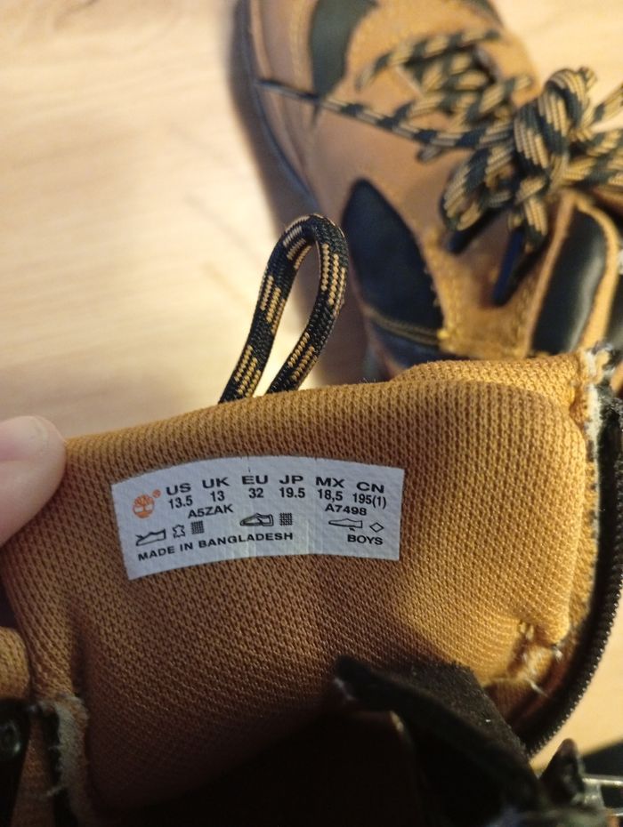 Chaussure Timberland enfant pointure 32 en bon état juste une petite tâche visible sur la chaussure sinon en très bon état très peu porté. Chaussures acheté chez Intersport