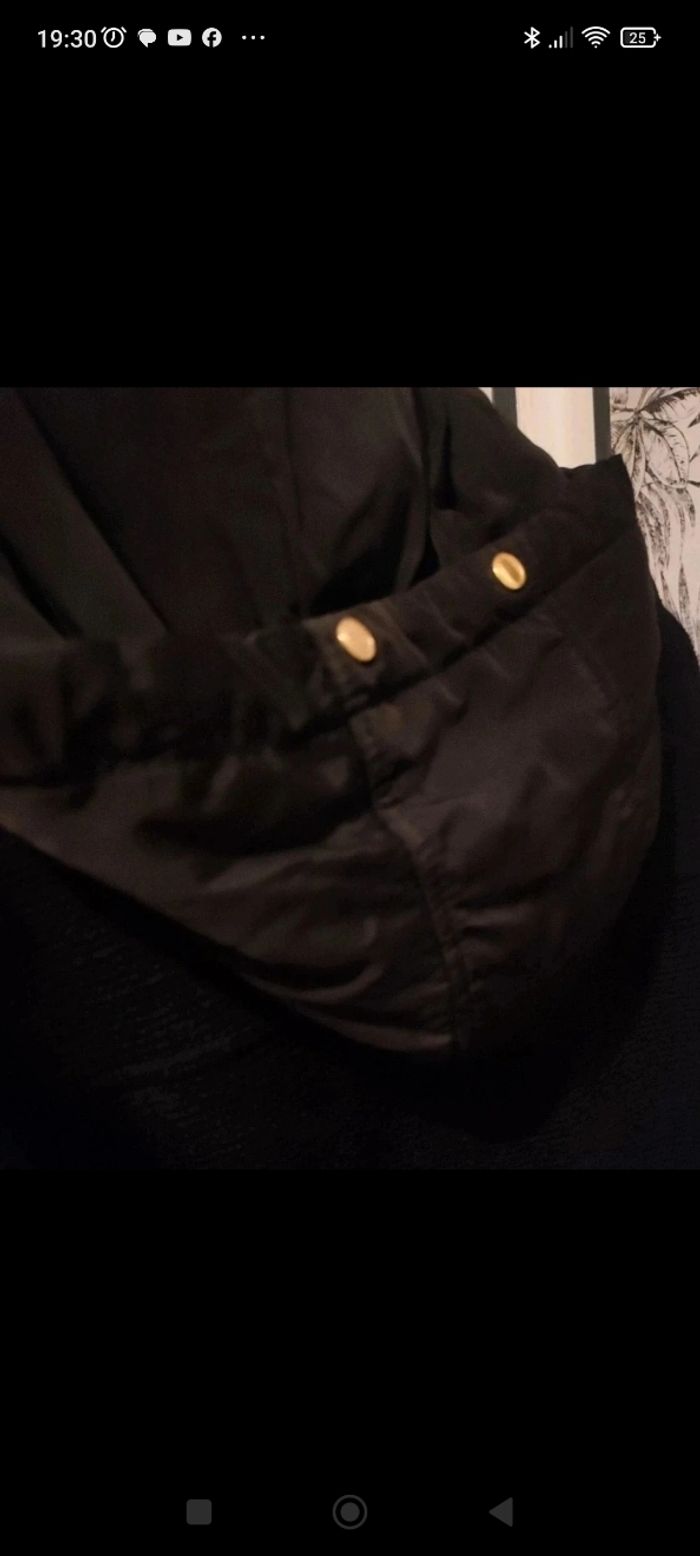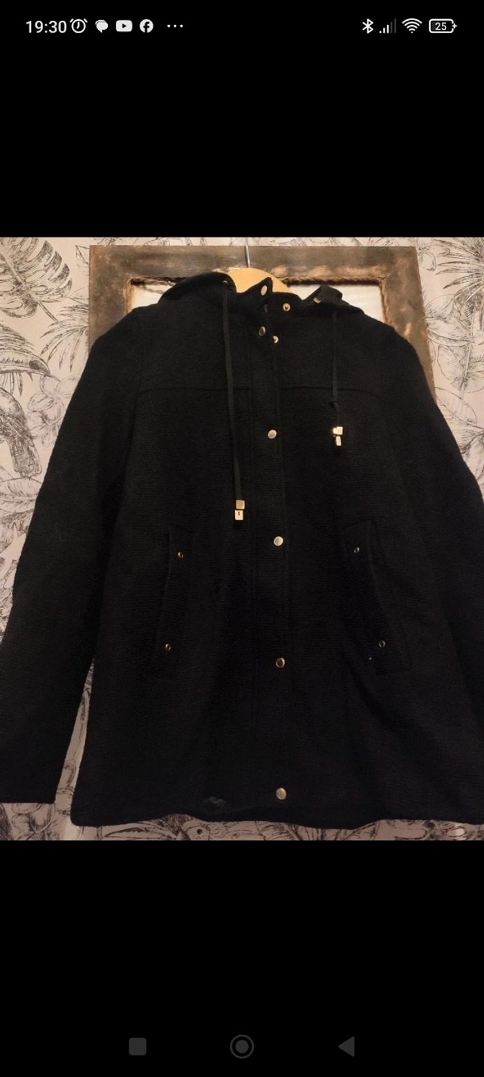Joli petit manteau noir à fermeture et pression il a une capuche amovible qui est aussi imperméable.