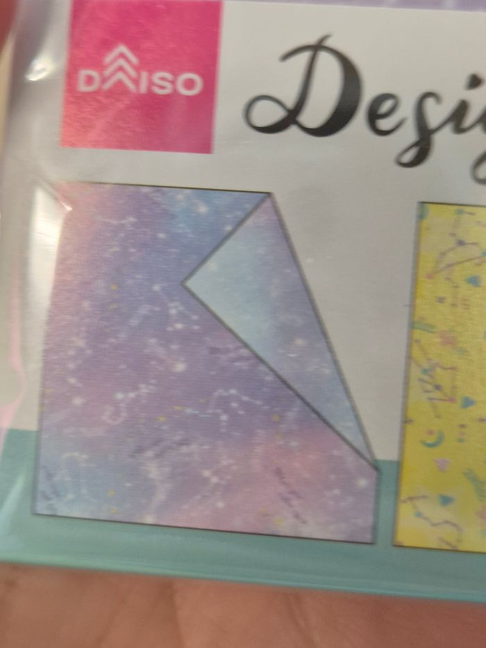 Papier Origami Daiso "Space Pattern". Papier, environ 15 x 15 cm. 36 feuilles, 4 modèles (9 feuilles/modèle). En parfait état (jamais utilisé). 🌸Les prix sont fixes, car ils intègrent les taxes auxquels les pros sont asujettis. Aucune offre ne sera acceptée qu'il s'agisse d'un lot ou d'un article à l'unité, merci. 🌸N'hésitez pas à vérifier la disponibilité de l'article avant de procéder à l'achat.