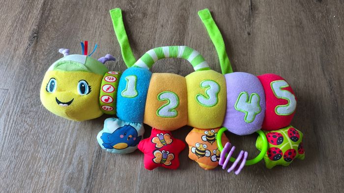 Je vends ce lot de ses deux peluches. La chenille est musicale et fonctionne très bien et la pieuvre est sympas pour l'éveil.