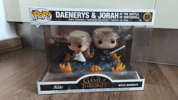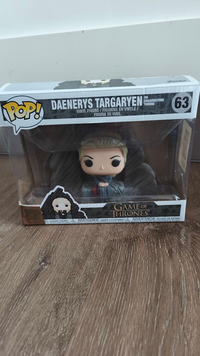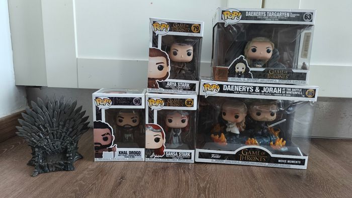 Bonjour je vends ce lot de pop de la saga game of thrones pour 55€ au lieu de 59€. Je peux vendre séparément aussi. Le trône sans la boîte est à 12€ Khal Drogo 90 (jamais ouverte) est à 9€ Arya 79 (jamais ouverte) est à 6€ Sansa 82 (jamais ouverte) est à 6€ VENDUE Daenerys sur le trône (jamais ouverte mais boîte abîmée) est à 14€ Daenerys et jorah (jamais ouverte) est à 18€