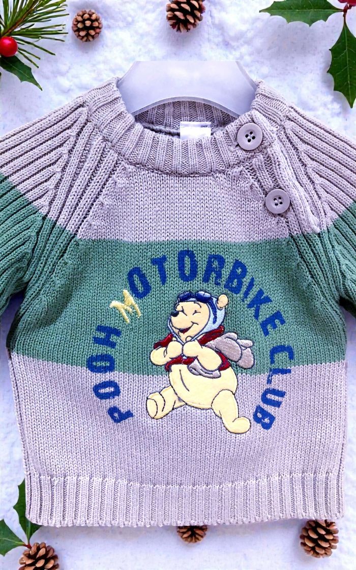DISNEY BY C&A - PULL MAILLE BÉBÉ GARÇON WINNIE L'OURSON AVEC MANCHES RAGLANS 3M - photo numéro 1