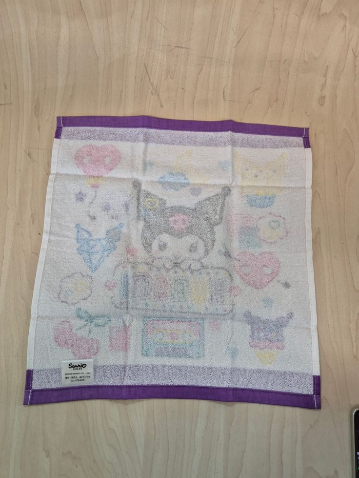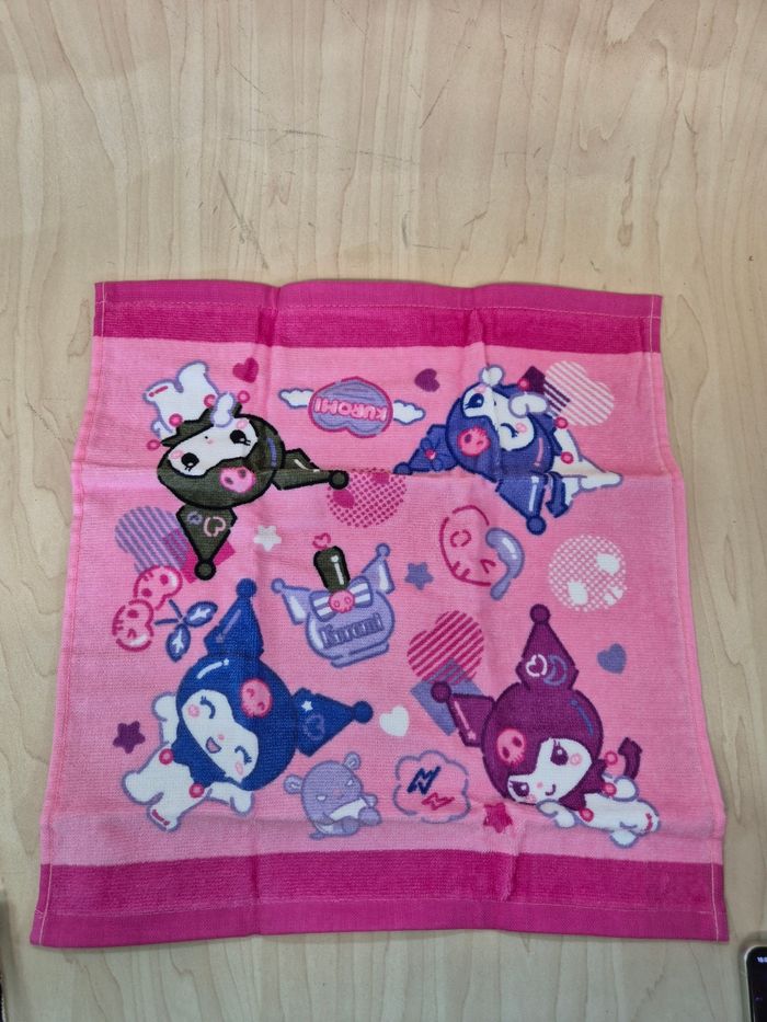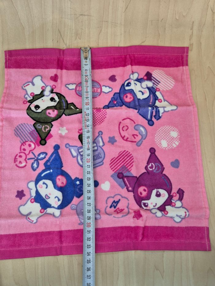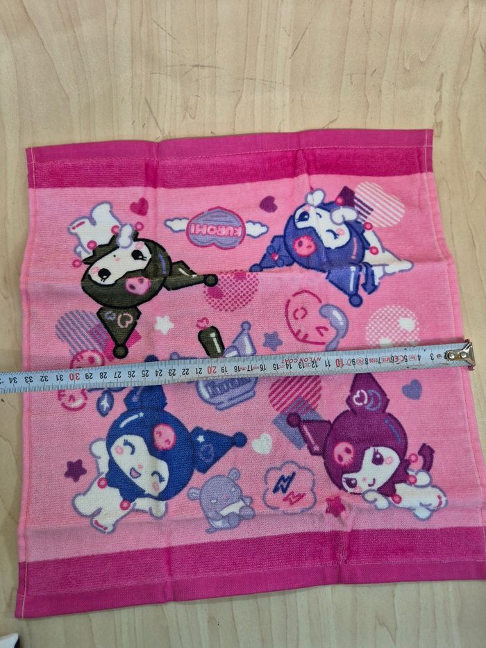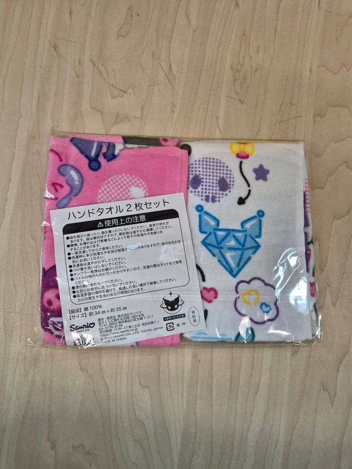 Set 2 mini serviettes Sanrio Kuromi Atarikuji . Coton, environ 34 x 35 cm. Neuves sous plastique (ouvertes uniquement pour photos). 🌸Les prix sont fixes, car ils intègrent les taxes auxquels les pros sont asujettis. Aucune offre ne sera acceptée qu'il s'agisse d'un lot ou d'un article à l'unité, merci. 🌸N'hésitez pas à vérifier la disponibilité de l'article avant de procéder à l'achat.